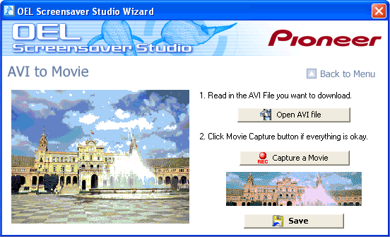 ![]() Select the AVI file that you wish to capture. That AVI file is displayed in the preview on the right side. If the file is in a format that is not compatible with OEL Screensaver Studio despite being an AVI file, no preview will be generated. Even if you select that file, the message The specified AVI file is not in a compatible format. displays and you will not be able to capture that file. 4