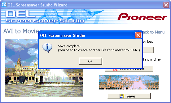 ![]() When you click on No and you finish editing in the wizard, an explanation of the LKD file and LKA file appears. An LKD file is a file format for use in OEL Screensaver Studio and an LKA file is used to organize LKD files when sending them to your car audio. When you actually send LKA files to your car audio you must write them to a CD. OEL Screensaver Studio does not contain a CD writing function. Use commercial CD writing software. |