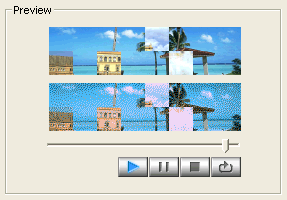 ![]() When you are finished with all the settings, click on Make a Slide Show. The Slide Show is now created. The movie you have created is displayed in the preview. The Slide Show that uses the colors of the original images is displayed on the top, the movie that will display in the car audio is displayed on the bottom. Play the movie you have created to confirm that there are no problems. When you wish to do the settings over again, repeat the settings that you have done up to this point. When all the procedures are finished and the Slide Show is complete, click Save. 8